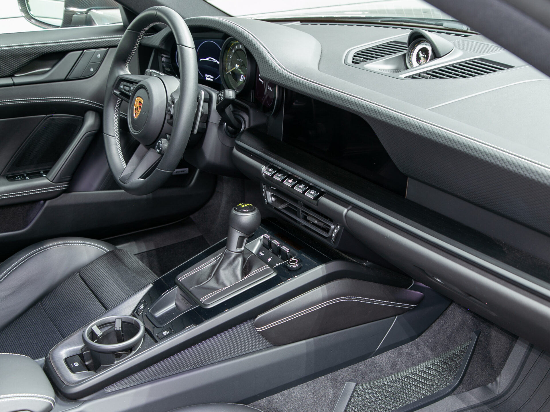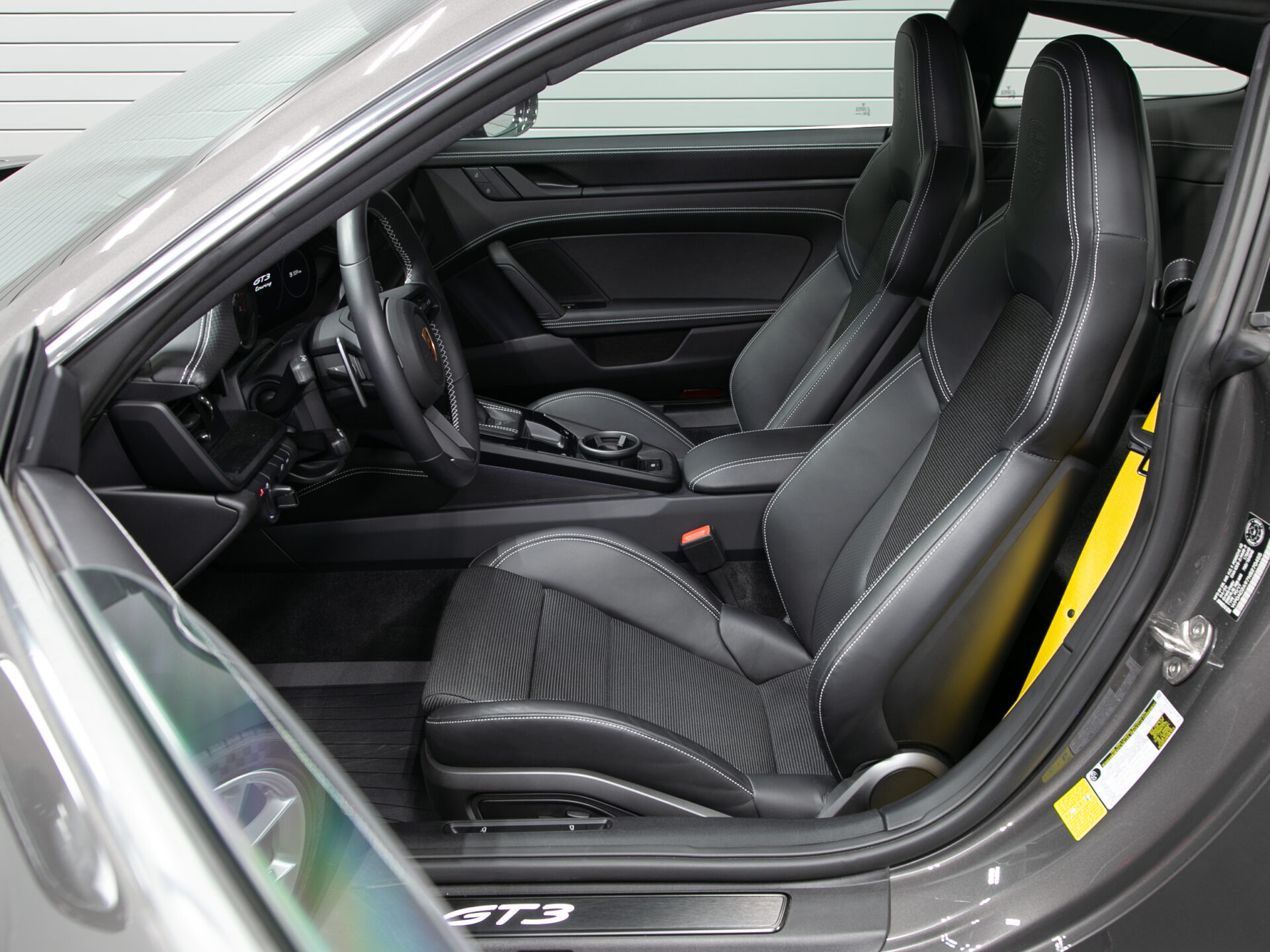 Leather Interior in Black with Fabric Seat Centres and GT Silver Stitching